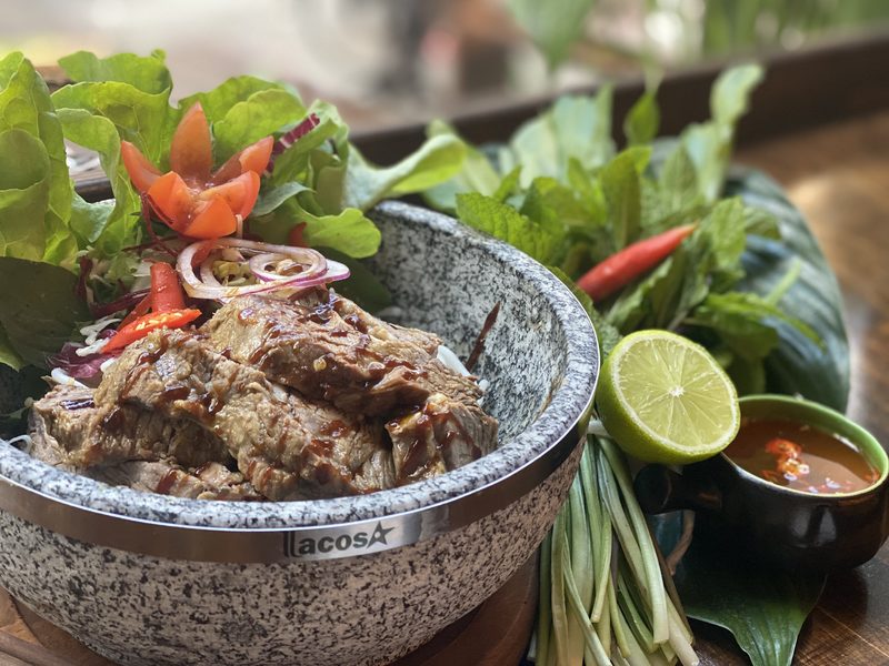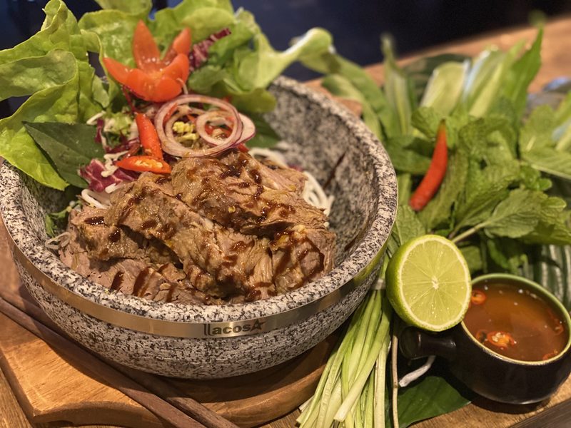 Traditional spicy lemongras broth with rice noodles, tender beef of your choice, shrimp-chicken-meat balls, topped with fresh herbs. Served with a side salad.